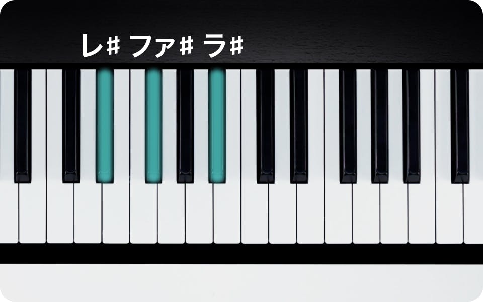 D#マイナー・コードは、根音(レ#)、短3度(ファ#)、完全5度(ラ#)から構成されるトライアド(三和音)です。