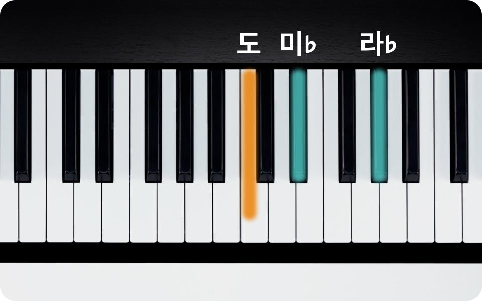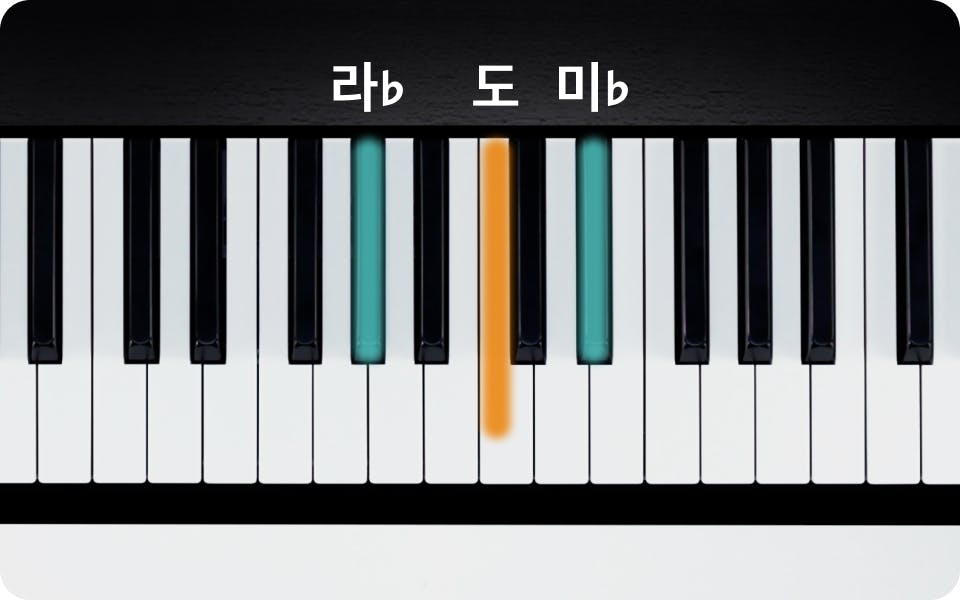 A♭ 메이저 코드의 근음은 라♭(A♭)입니다. 이를 찾으려면 우선 피아노에서 세 개씩 묶인 검은 건반을 찾아보세요. 이 중 가운데의 검은 건반이 라♭입니다.