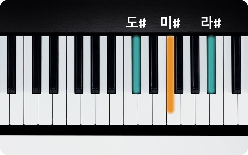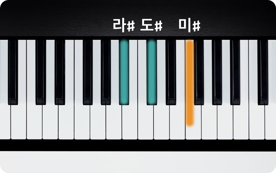A♯ 마이너 코드의 근음은 라♯(A♯)입니다. 피아노에서 세 개씩 묶인 검은 건반을 찾아보세요. 이 중 가장 오른쪽에 있는 검은 건반, 즉 라와 시 사이에 있는 검은 건반이 라♯입니다.