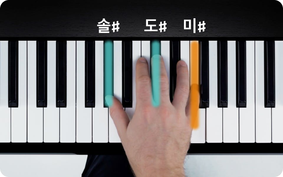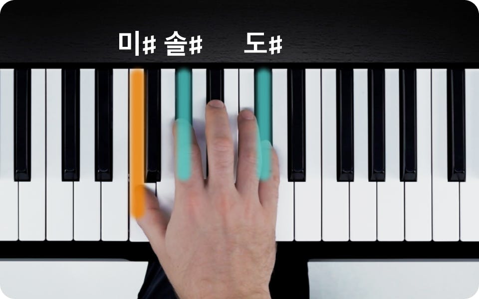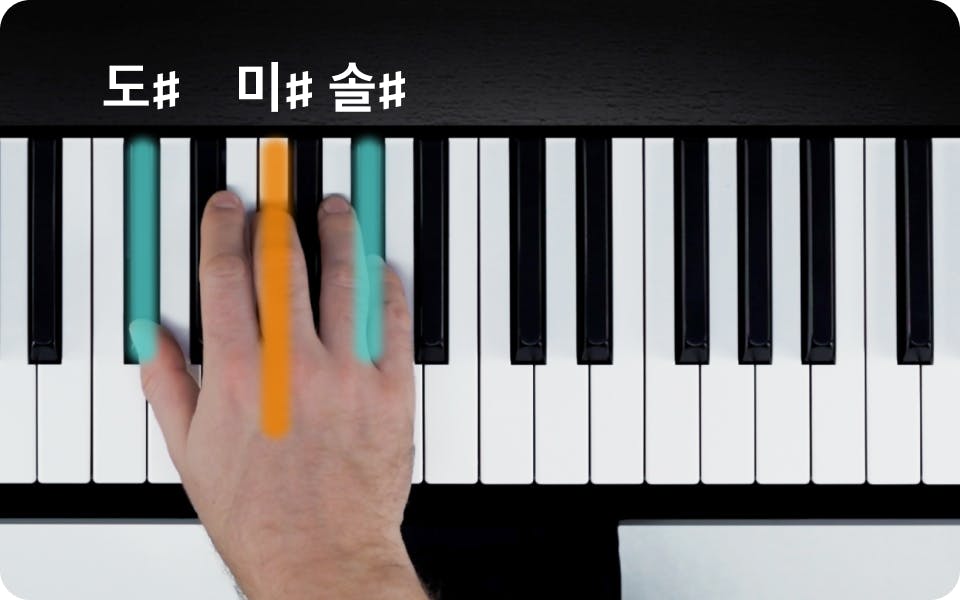 곡에 따라서 다른 손가락을 사용할 수도 있으니 주의하세요. 위의 동영상을 통해 C♯ 메이저 코드 쌓는 법을 눈으로 확인하세요.