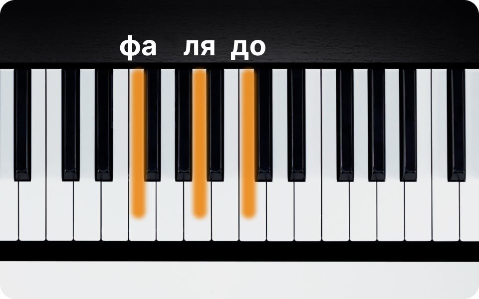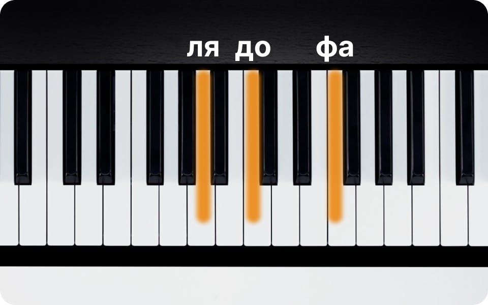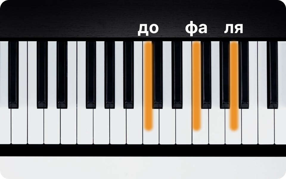 Чтобы сыграть аккорд фа мажор, для начала нужно найти основной тон — ноту фа. Взгляните на клавиатуру и сфокусируйтесь на группе из трех черных клавиш. Белая клавиша слева от этой группы и есть фа. С нее следует начинать построение аккорда.
