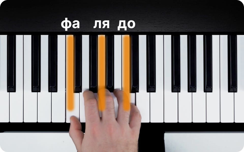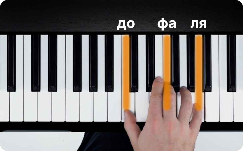 Аккорд фа мажор состоит из трех нот: фа, ля и до. Чтобы сыграть основной аккорд правой рукой, используйте следующие пальцы: